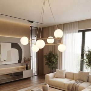 Bijele kugle na lusteru imaju važnu ulogu u difuziji svjetlosti. Za razliku od prozirnih ili tamnih sjenila, bijelo staklo omogućava meko i ujednačeno osvjetljenje koje ne zamara oči. Zbog toga je ovakav luster idealan za dnevne boravke, trpezarije, ali i spavaće sobe. Svjetlost koja dolazi iz kugli djeluje prirodno i prijatno, što doprinosi opštem osjećaju udobnosti u prostoru.