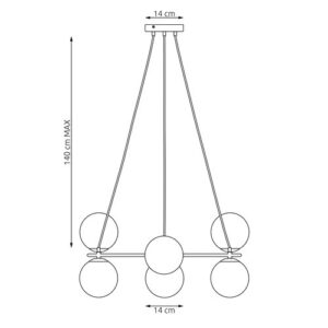 Dizajn lustera sa kuglama često uključuje metalnu konstrukciju iz koje se granaju nosači sa postavljenim kuglama. Ovaj oblik podsjeća na stil sredine prošlog vijeka (mid-century modern), koji je ponovo postao veoma popularan. Simetričan ili asimetričan raspored kugli daje prostoru dinamičnost i vizuelni interes, čineći luster ne samo izvorom svjetlosti nego i dekorativnim elementom.