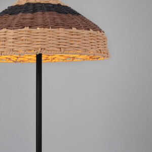 Spoj braon i crne boje daje lampi sofisticiran i prirodan izgled. Braon tonovi unose osjećaj topline i domaće atmosfere, dok crna boja pruža dozu modernog kontrasta i vizuelne stabilnosti. Zahvaljujući ovoj kombinaciji, podna lampa se lako uklapa u različite stilove uređenja, uključujući moderne, industrijske, rustikalne, ali i klasične enterijere.